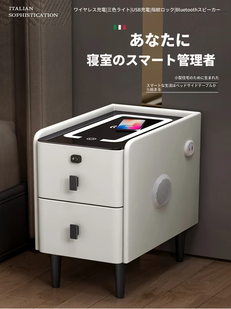 香港送料無料!超スリムな小型スマートナイトスタンド、ワイヤレス充電対応、指紋ロック搭載!高品質な無垢材使用、現代的かつシンプルなデザインの多機能テーブルで生活を格上げ!