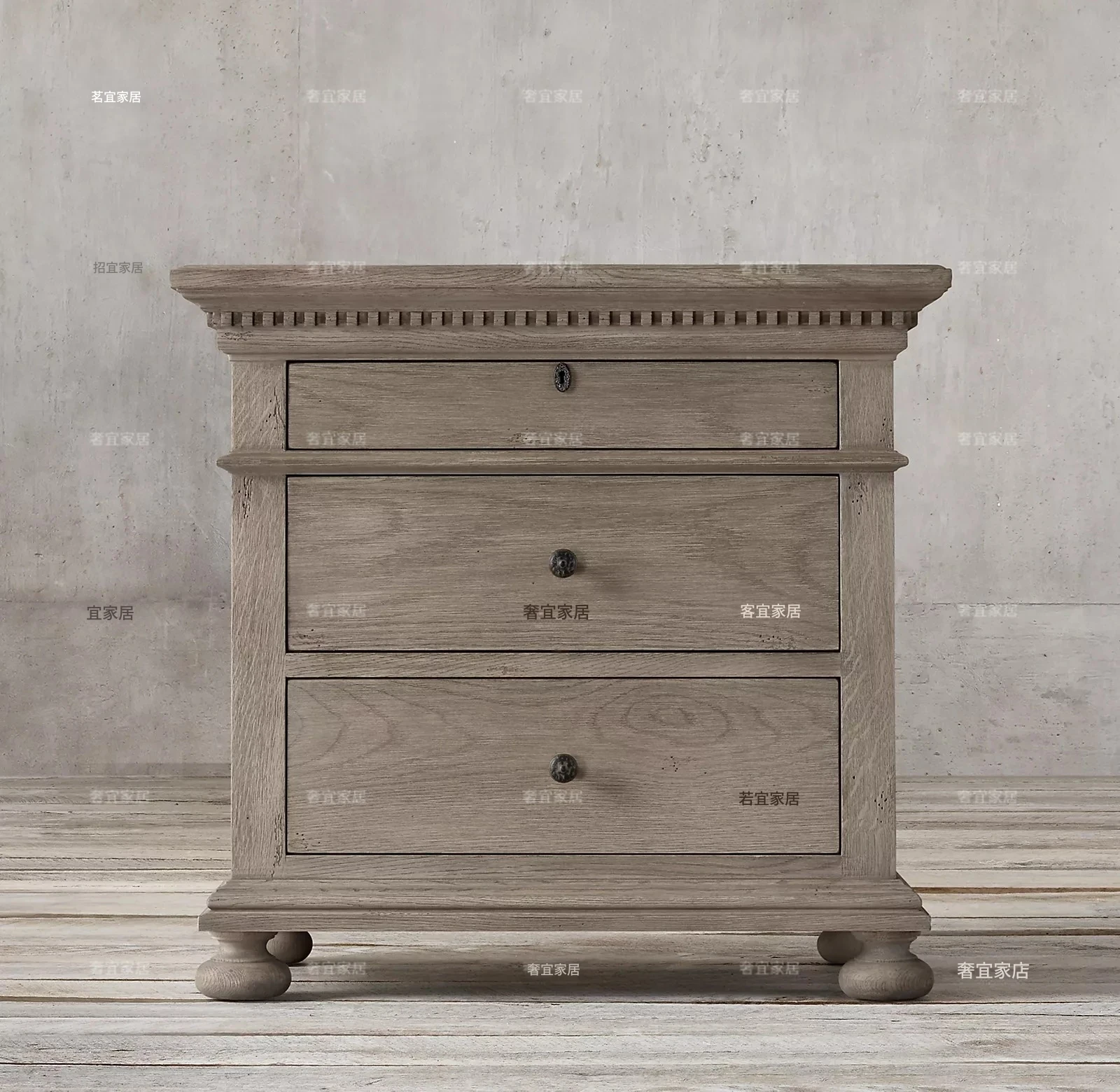 RHオリジナル輸出オーク材ナイトテーブル フレンチヴィンテージ アメリカンカントリー スリードロワー収納キャビネット 室内インテリアに最適な実木製、スタイリッシュで機能的なデザイン!