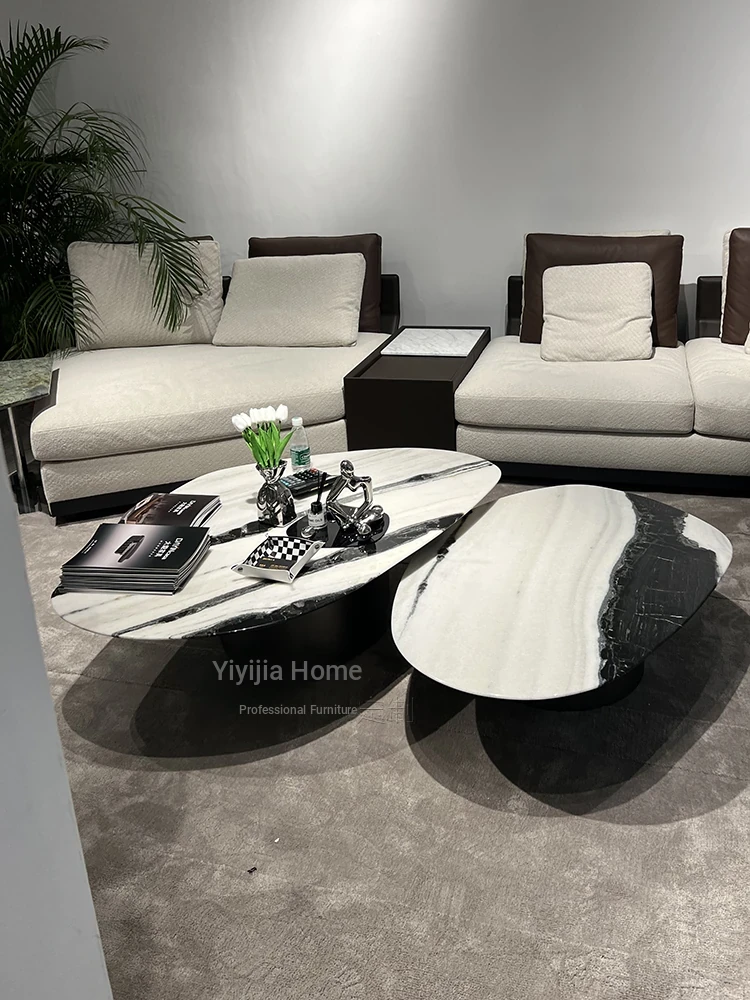 Elegant Italian Minimalist Panda White Natural Marble Coffee Table Set - Modern Luxury for Contemporary Living Rooms - High-End Home Furniture.