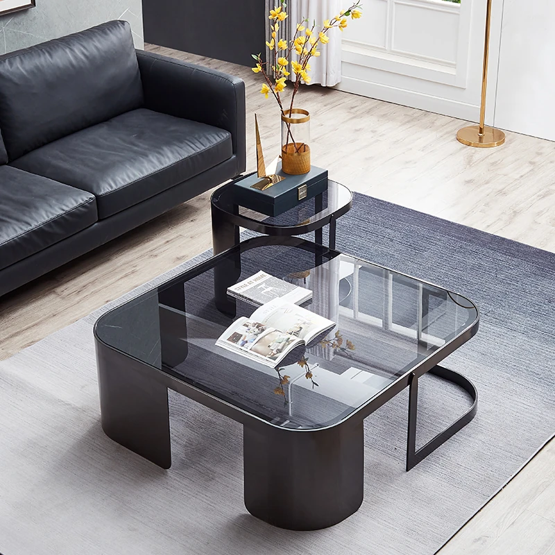 Modern Minimalist Luxury Square Coffee Table Set with Tempered Glass and Stainless Steel for Living Room - Elegant Italian Design