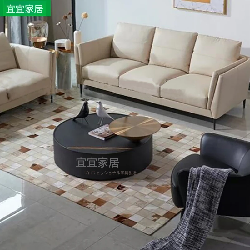 ポストモダンソファセット&コーヒーテーブル - 小さなスペースにぴったりの香港スタイルのモデルルーム。個性的な円形テーブルで、ラグジュアリーなリビング空間を演出します!
