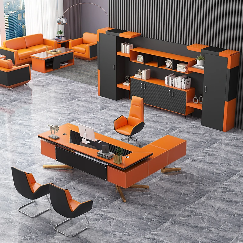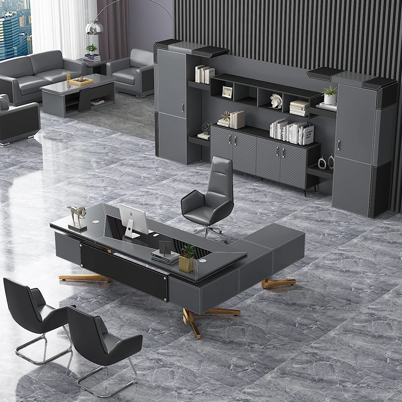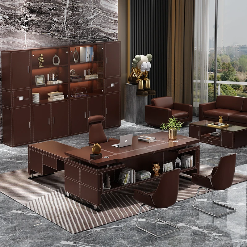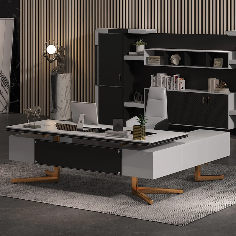 会長専用のシンプルでモダンな高級感漂うコンビネーションオフィスデスク - スタイリッシュなデザインで仕事の効率をアップし、洗練された空間を演出します。
