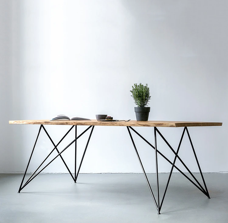 北欧スタイルの無垢材とアイアン製シンプルモダンオフィスデスク|会議・商談に最適なクリエイティブワークテーブル|広々としたコンピューターデスク