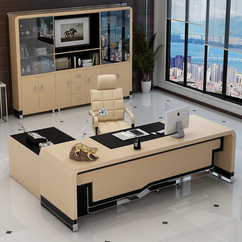 エレガントで洗練されたオフィスデスクセット | シンプルでモダンなデザインの社長机 | 快適な書斎やスタディに最適 | 機能性と美しさを兼ね備えた組み合わせで、理想のオフィス空間を実現します!