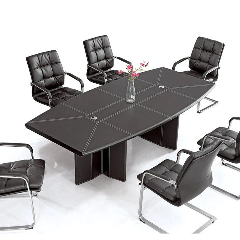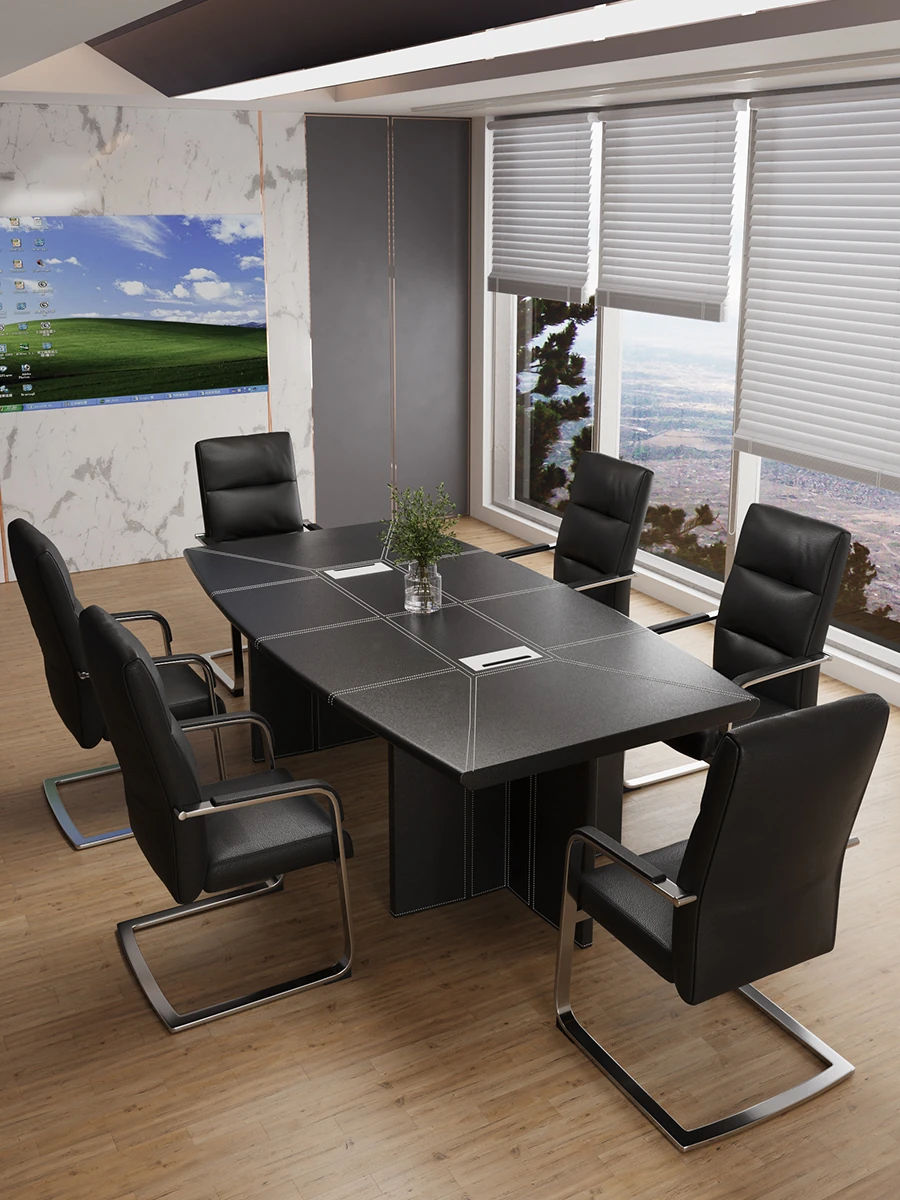 高級感あふれるシンプル&モダンな会議テーブル|ミニマリストデザインの大型トレーニングデスク|快適な会議室用に最適な椅子セット付きワークステーション