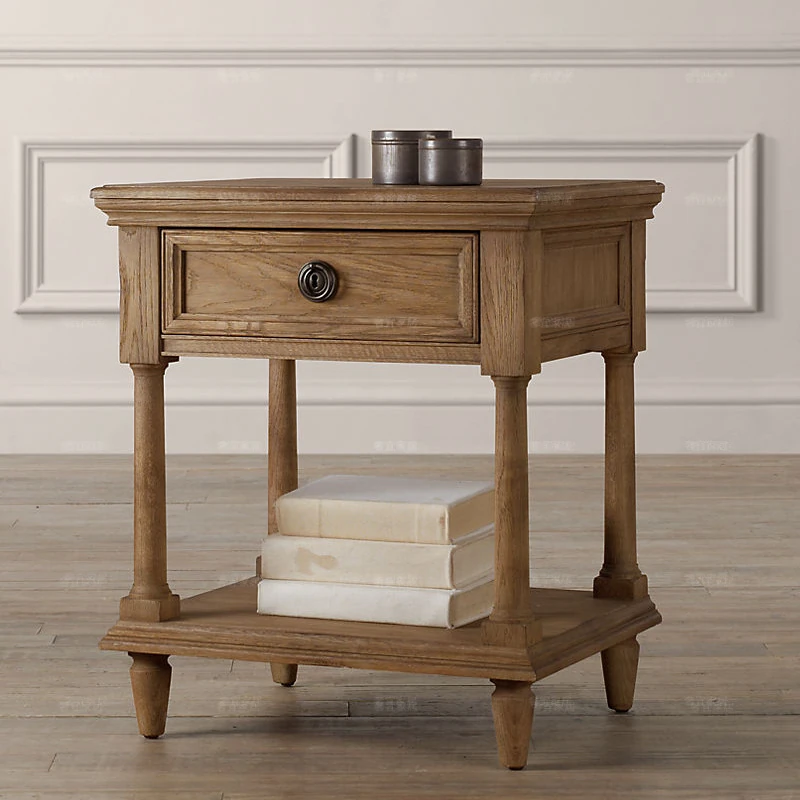 American Style Solid Wood Nightstand - Vintage French-Inspired Bedside Storage Cabinet for Bedroom, Small Organizer Table for Living Room - Perfect for Your Home Décor and Storage Needs!