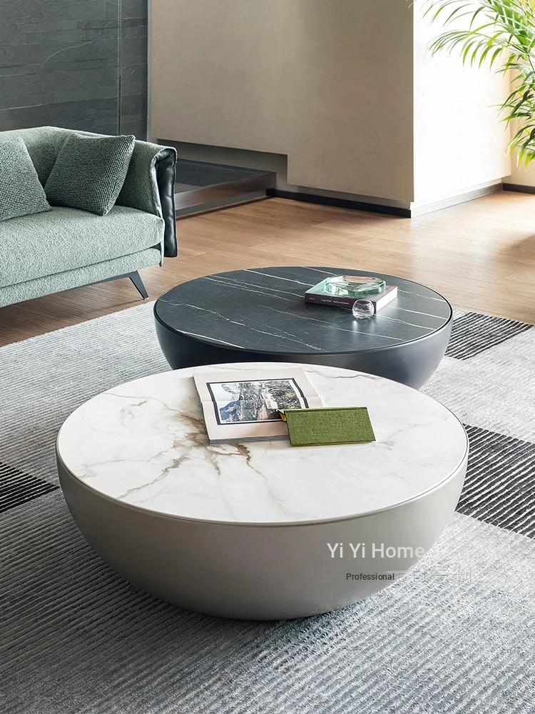 Wabi-Sabi Style Italian Slate Coffee Table - Modern Minimalist Round Design for Spacious Living Rooms - Luxury Touch for Your Home