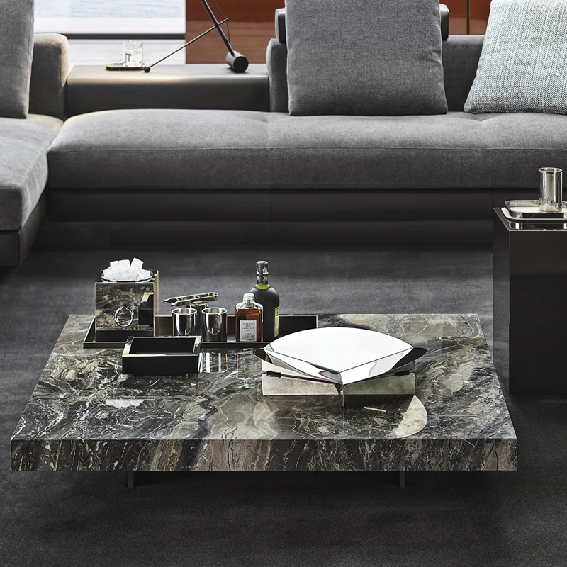 Elegant Italian Minimalist Natural Luxury Venice Marble Square Coffee Table – Modern Light Luxury Design for Villa Living Room and Home Use