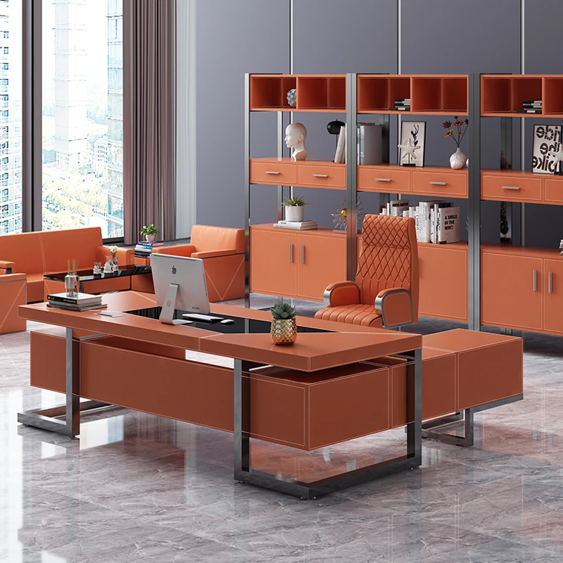 "Elegant and Stylish Executive Desk Set - Modern Large Boss Desk for Managers and CEOs - Minimalist Office Furniture for a Sophisticated Workspace"